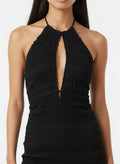 Meet your new LBD. The Keyhole Halter Textured Mini Dress pairs a sleek halter neckline and front keyhole with a soft, stretch textured knit that hugs in all the right places. The clean, above-the-knee length keeps it polished while the sculpting bodice delivers night-out confidence.