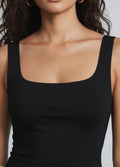 The square-neck tank bodice grounds the look while the tiered ruffle skirt adds movement.