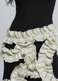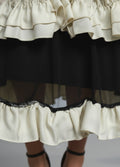 Bold contrast defines the Monochrome Dreams Dress. Oversized ivory ruffles ripple across a sleek black column silhouette, creating dramatic dimension.