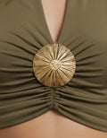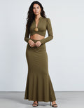 Elevate your evening style with this sculpted Olive Cut-Out Maxi Dress, featuring a twist-front bodice and refined cut-out detail that highlights the waist. Crafted from a sleek stretch fabric blend, it offers structure and movement in equal measure. The deep olive tone is universally flattering and ideal for both day and night.