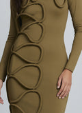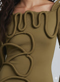 Architectural elegance meets modern femininity in the Sculptural Cascade Dress. Dimensional piping traces the silhouette from neckline to hem.
