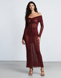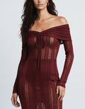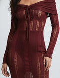 Soft texture meets timeless femininity in the Marais Off-Shoulder Knit Maxi Dress. Crafted in a detailed crochet-inspired knit, this elegant silhouette drapes gently over the body with subtle sheer texture and a romantic neckline tie. Designed to flatter and move with you, it’s your effortless statement piece for nights out or resort evenings.