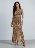 Wild Muse Leopard Ruched Slit Maxi Dress